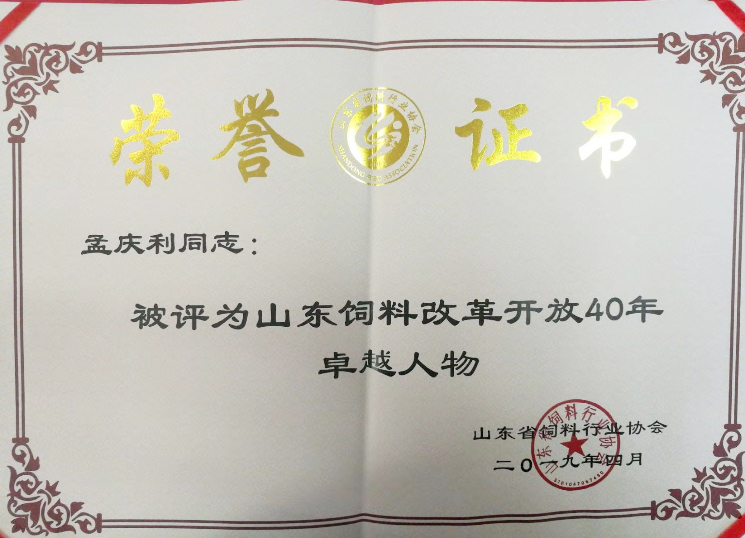 孟慶利董事長被評(píng)為山東飼料改革開放40年卓越人物