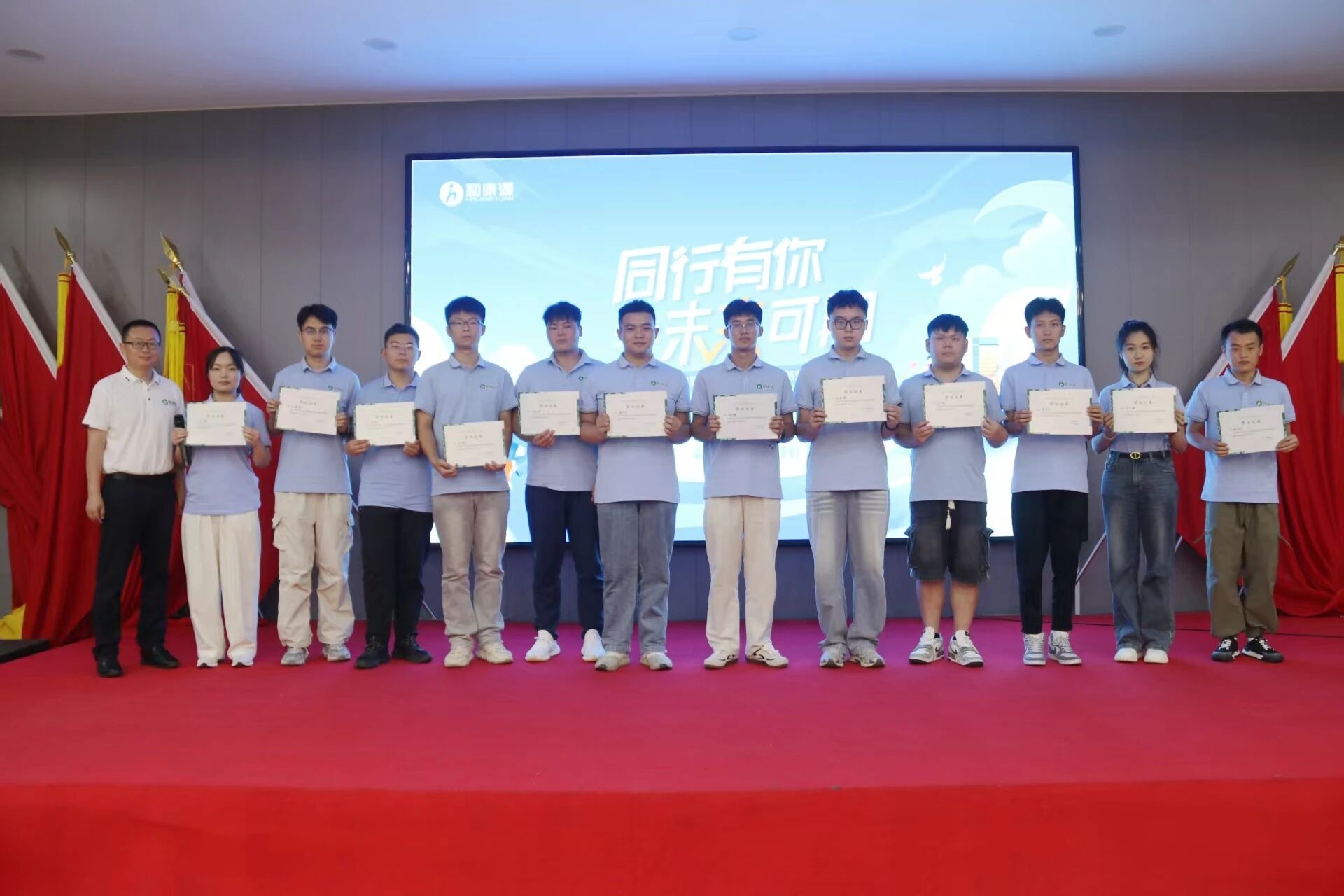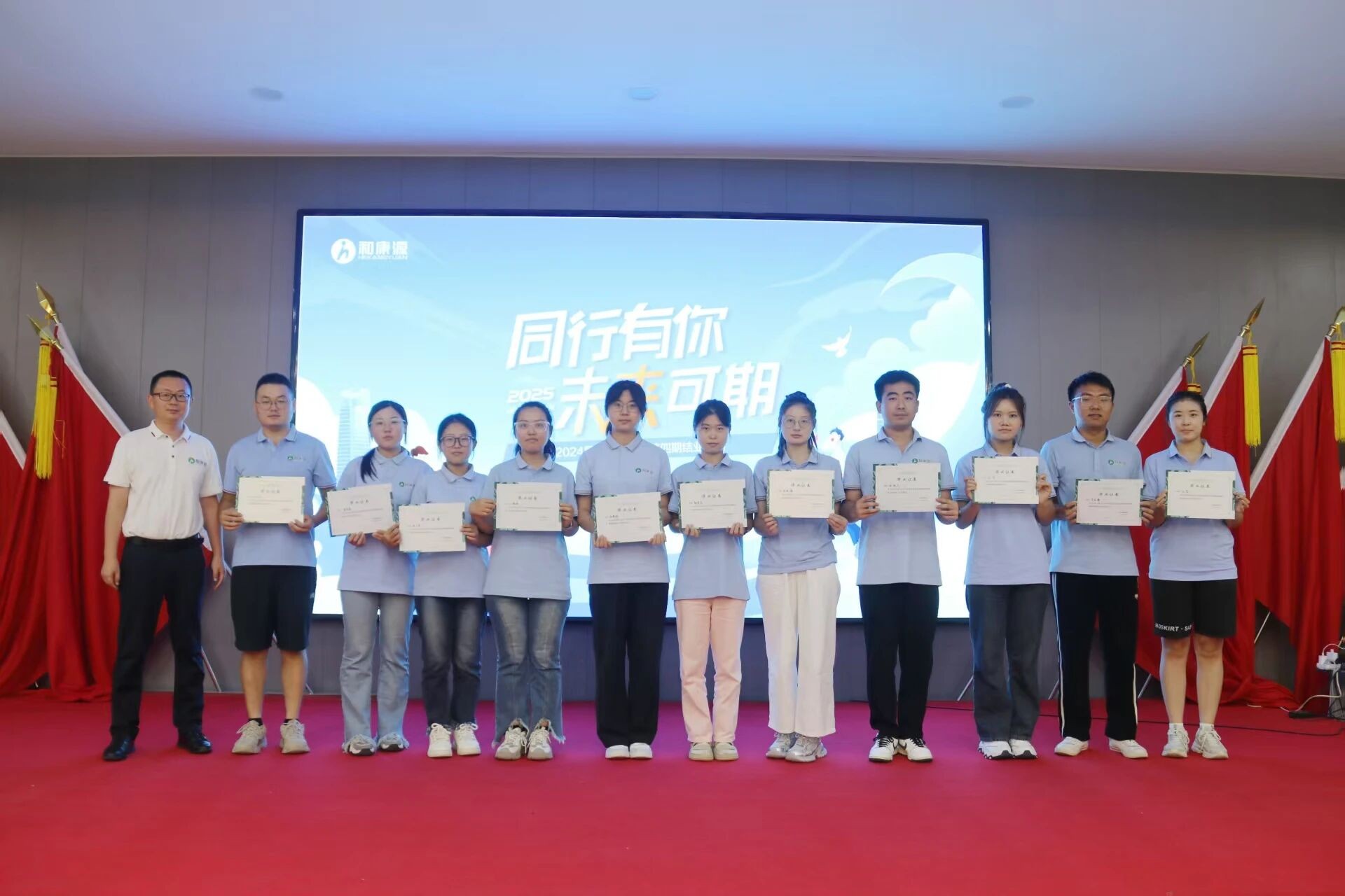 ? ? ? 手持結(jié)業(yè)證書的那一刻,時(shí)間仿佛凝固。這一本本證書,是學(xué)員們過去一年努力的勛章,更是他們未來繼續(xù)前行的動(dòng)力源泉。大家共同見證了彼此的成長,眼中閃爍著激動(dòng)與自信的光芒。在和康源這個(gè)溫暖的大家庭中,他們將繼續(xù)并肩作戰(zhàn),攜手推動(dòng)集團(tuán)這艘巨輪迎風(fēng)遠(yuǎn)航,駛向更加輝煌的未來。
