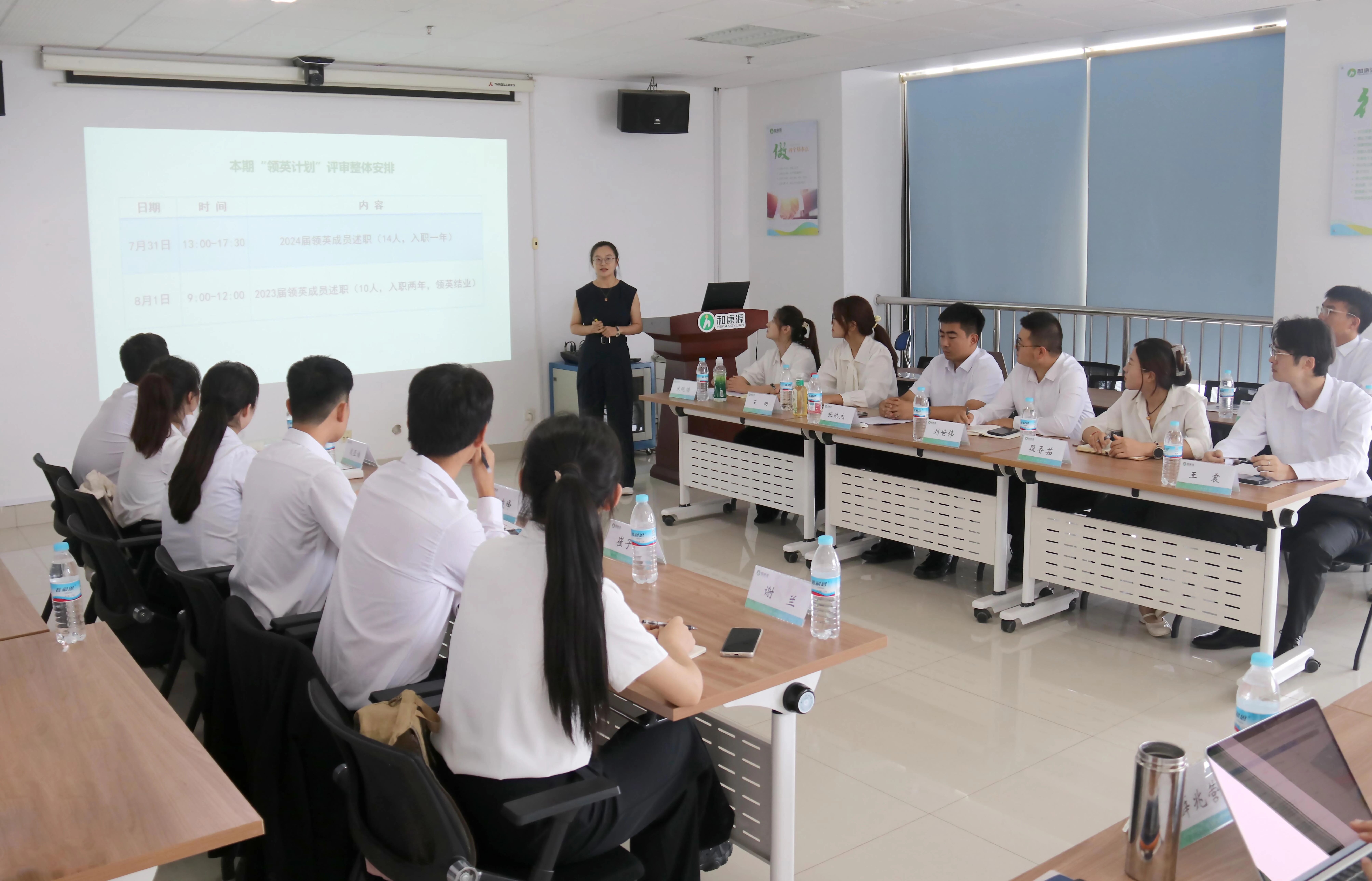 ? ? ? 7月31日-8月1日,和康源集團2025“領英計劃”評審活動在集團總部隆重舉行。本次評審旨在全面評估2023屆及2024屆高層次畢業(yè)生的綜合能力與發(fā)展?jié)摿?,為集團人才梯隊建設提供依據。本次評審集團董事長孟慶利、副董事長王勝、執(zhí)行總裁褚新星、人力資源總經理薛兆營組成評審組,共計24名領英人員參與評審活動。