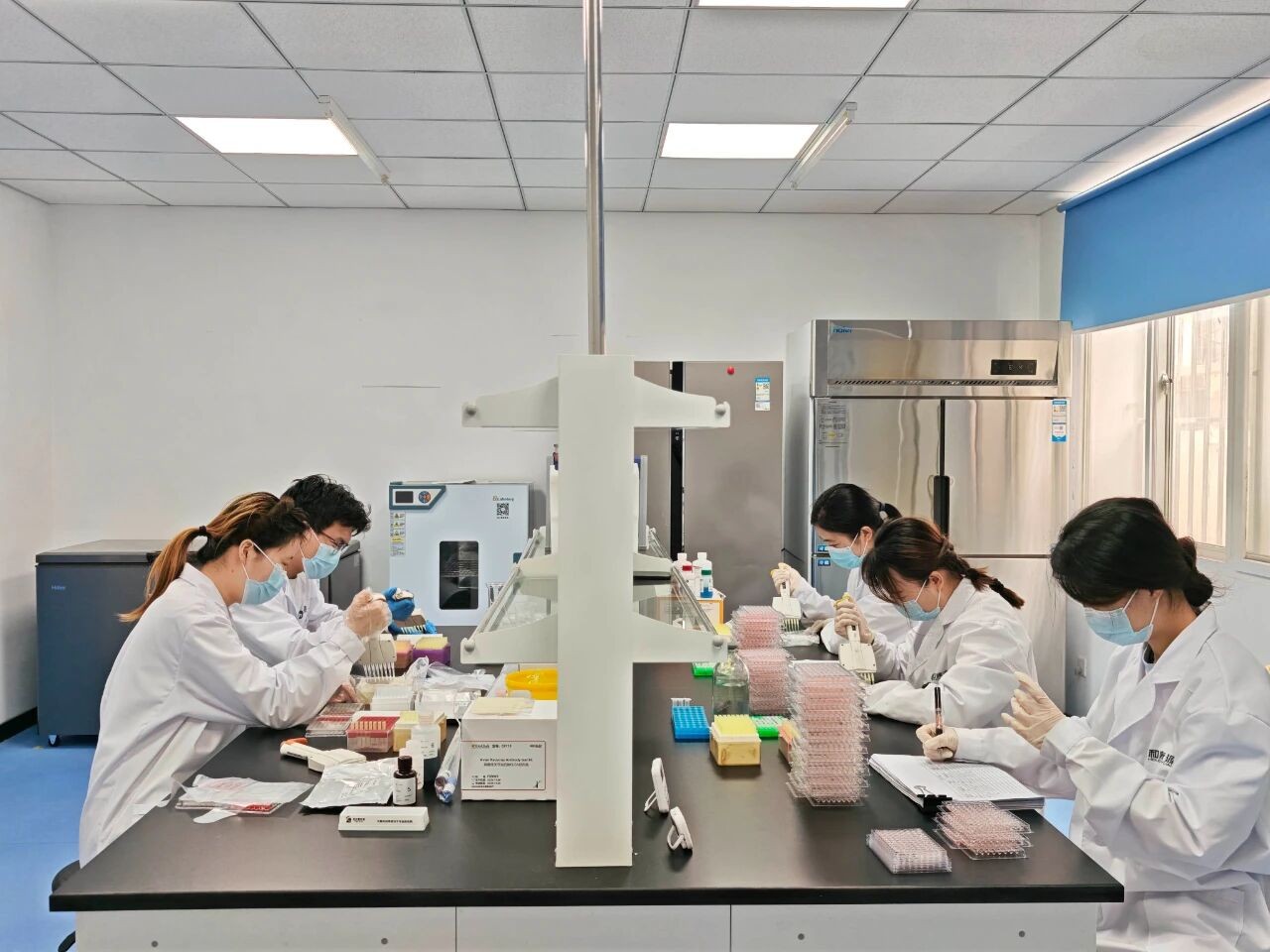 中心化驗(yàn)室檢測(cè)人員專(zhuān)注進(jìn)行常規(guī)抗體滴度測(cè)定和ELISA檢測(cè)的場(chǎng)景。他們對(duì)一線臨床樣本進(jìn)行精準(zhǔn)檢測(cè),為臨床治療及免疫效果評(píng)估提供關(guān)鍵依據(jù),為一線養(yǎng)殖保駕護(hù)航。實(shí)驗(yàn)室里此起彼伏的加樣聲、儀器嗡鳴聲,見(jiàn)證著檢測(cè)工作者構(gòu)筑動(dòng)物疫病防控屏障的日常堅(jiān)守。