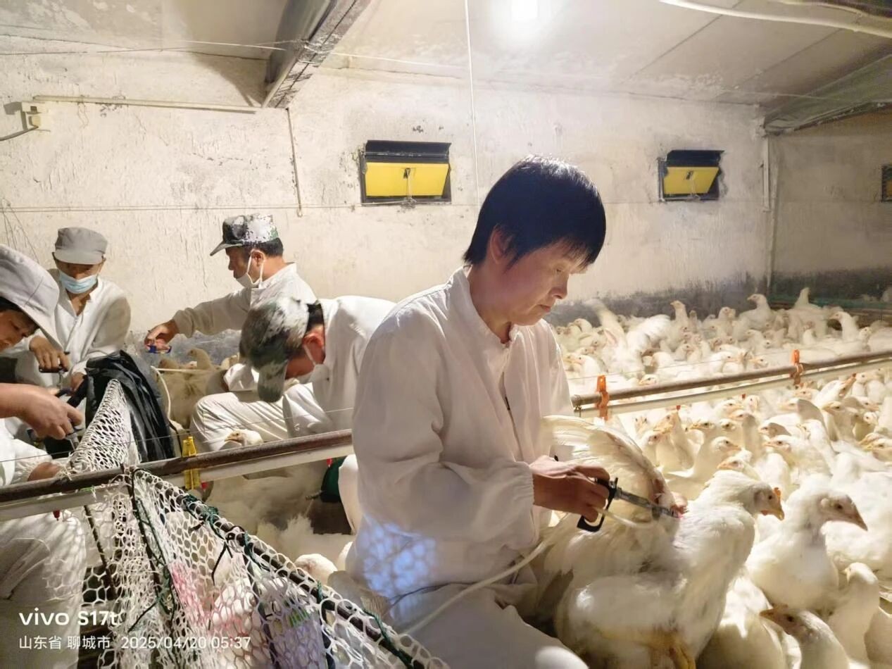 在商品鴨放養(yǎng)戶養(yǎng)殖一線,化驗(yàn)員張?bào)阏诓杉庖啉喐位蠲?日后的鴨群血樣。通過(guò)科學(xué)監(jiān)測(cè)抗體水平與發(fā)病數(shù)據(jù),系統(tǒng)評(píng)估鴨肝活苗免疫方案對(duì)降低病毒性鴨肝炎的防控效果,助力降低發(fā)病率,提升養(yǎng)殖戶的成活率,為鴨肝疫病防控提供可推廣的解決方案。