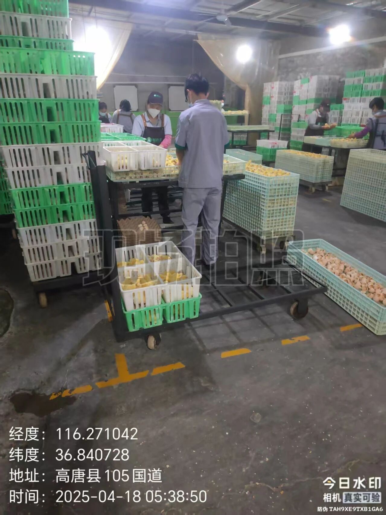 早上5:30揀雞;李榮卿副場(chǎng)長(zhǎng)每天早上早起跟著出雞人員一起揀雞,對(duì)出雞現(xiàn)場(chǎng)關(guān)注蛋殼污染程度毛蛋、弱雛比例等能及時(shí)發(fā)現(xiàn)出雞早晚是否合適,對(duì)應(yīng)批次后續(xù)調(diào)整方向。