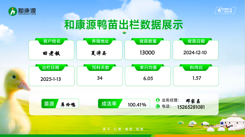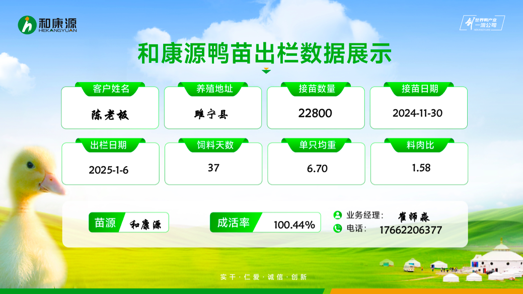 近期,和康源鴨苗的出欄數(shù)據(jù)表現(xiàn)突出,不僅出欄成績(jī)優(yōu)秀,而且成活率高,為養(yǎng)殖戶(hù)帶來(lái)了顯著的經(jīng)濟(jì)效益。